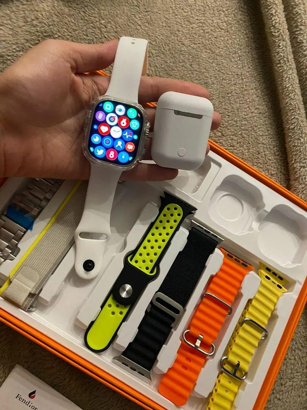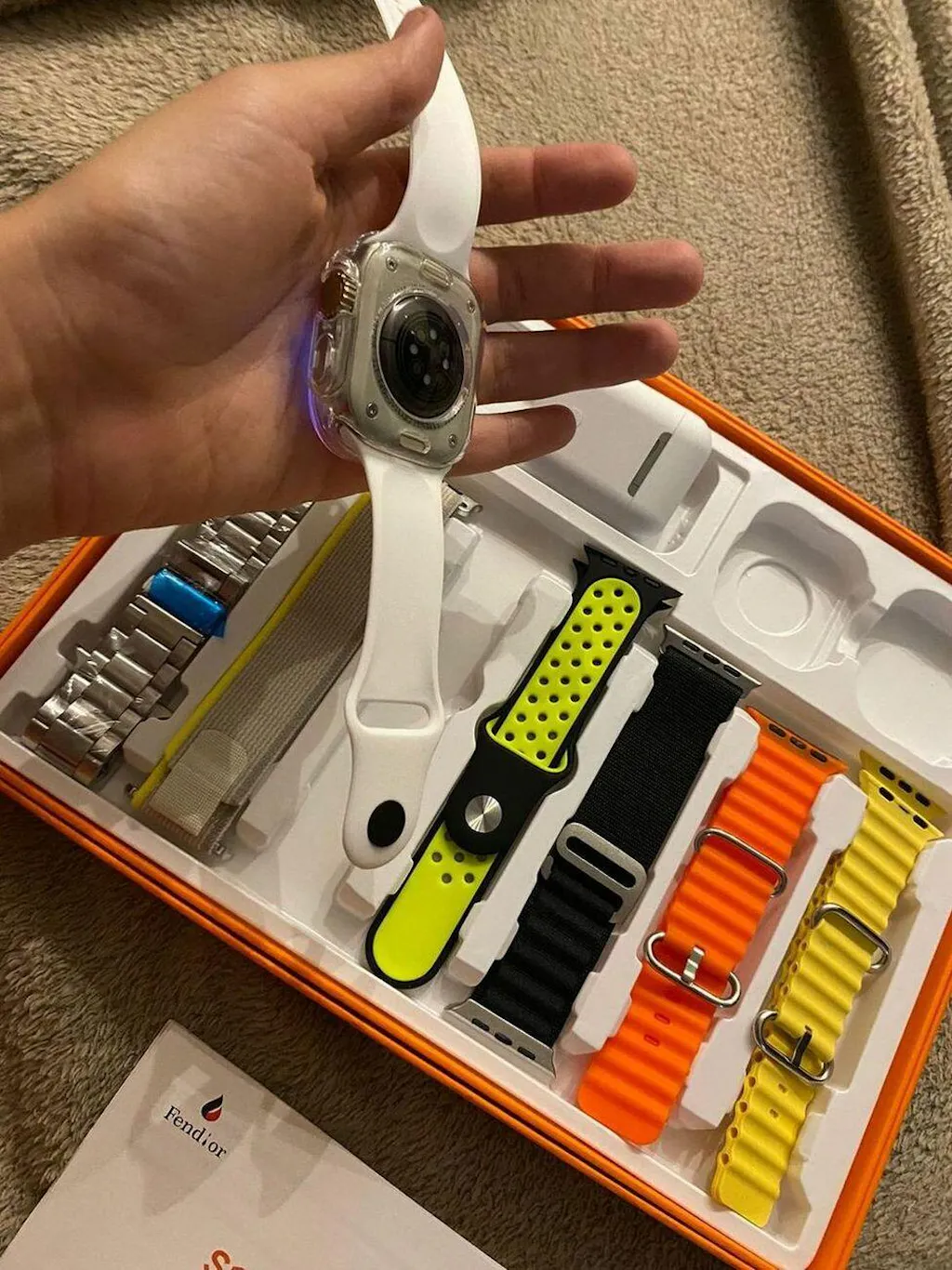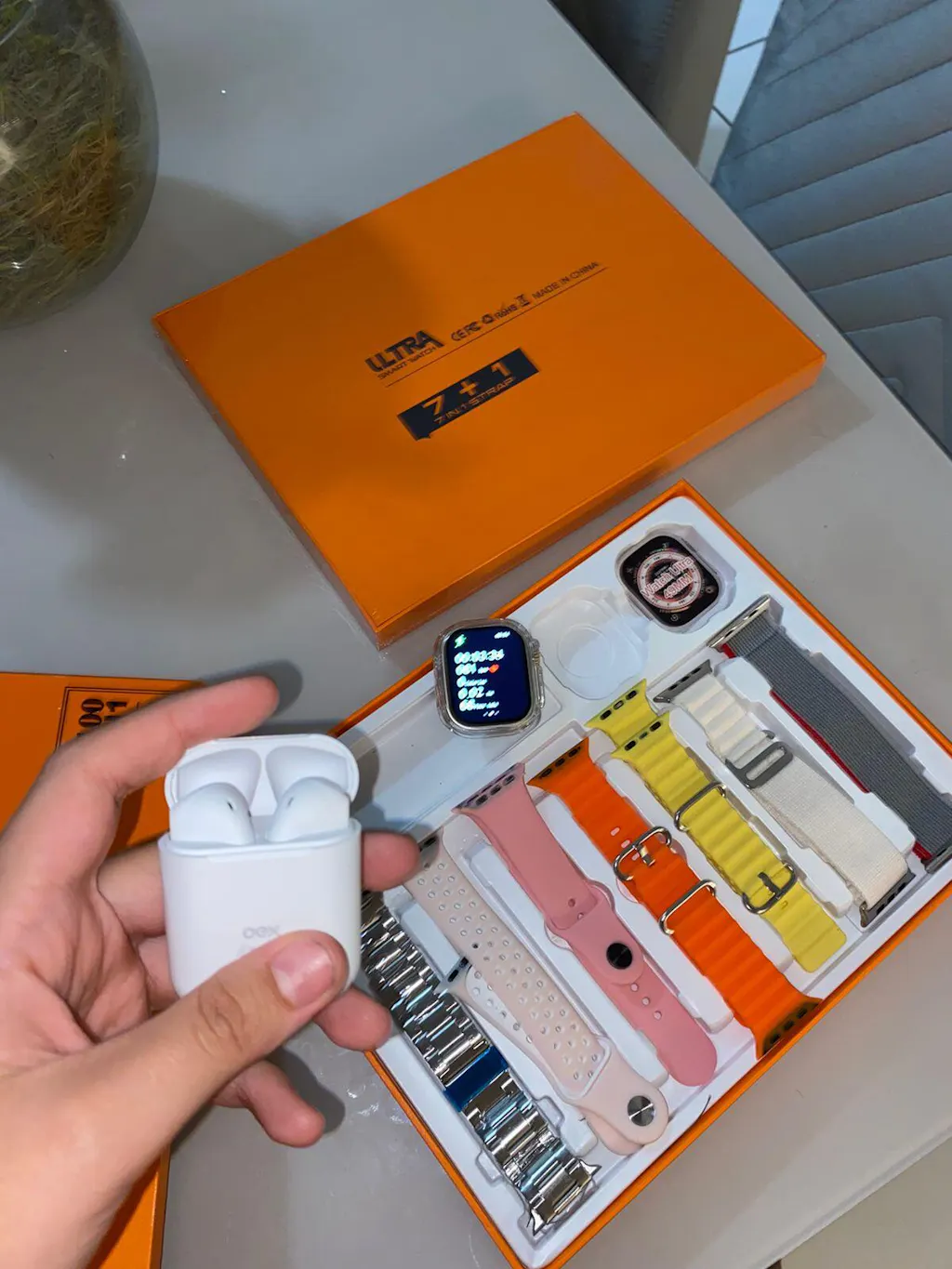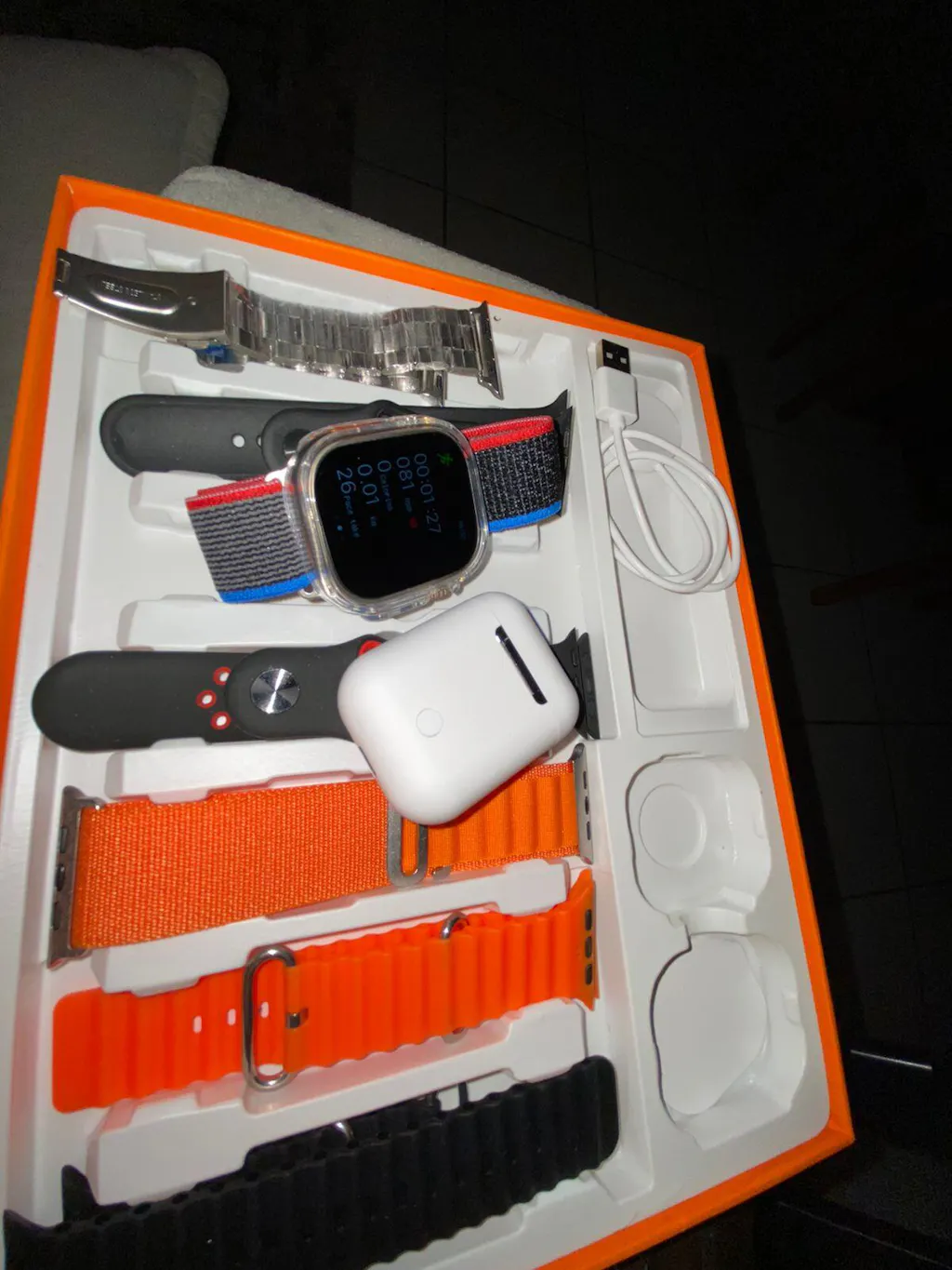 Produto excelente chegou mesmo antes do prazo, na caixa e embalado, recomendo a loja, relógio muito bom fácil de configurar com o aplicativo (tem vídeos no YouTube) vem com manual de como colocar para carregar e tirar as pulseiras com travas de segurança e o manual de uso. Vale a pena, ainda vem esse fone lindo , muito bom!