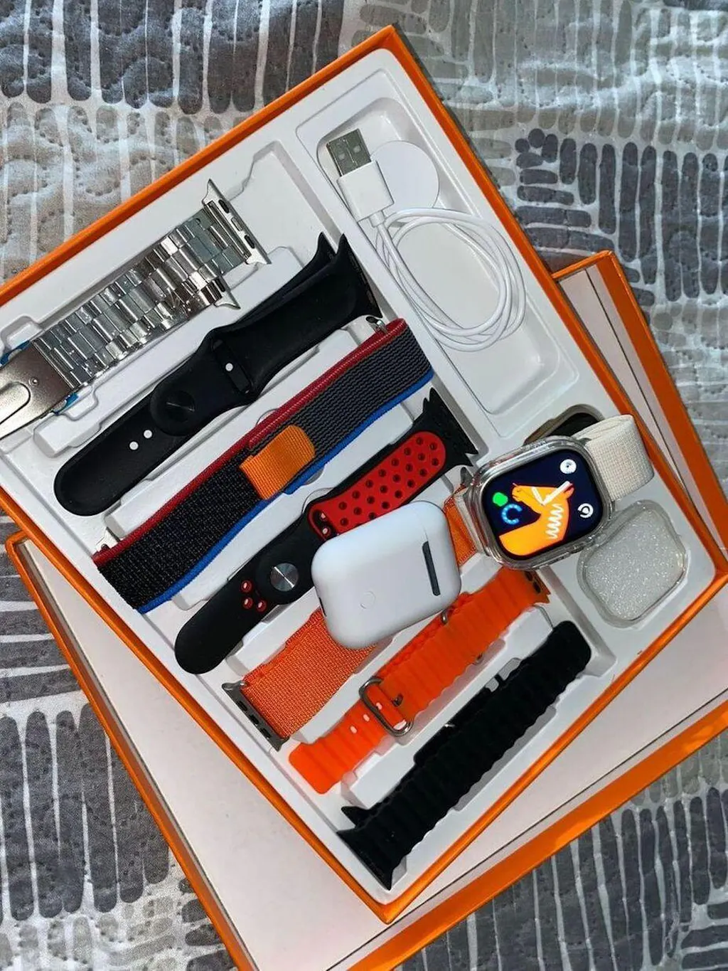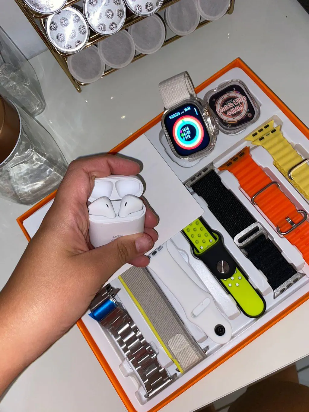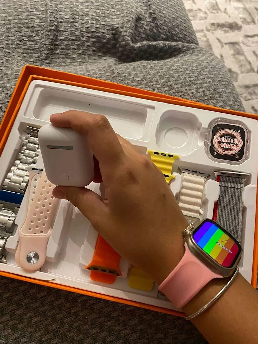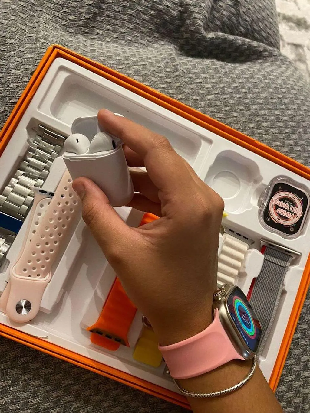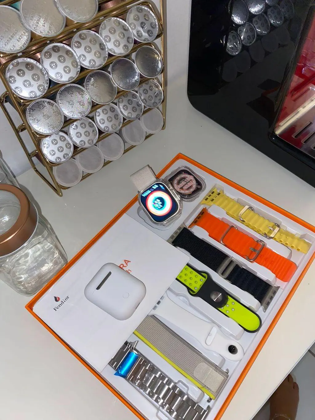 Produto excelente chegou mesmo antes do prazo, na caixa e embalado, recomendo a loja, relógio muito bom fácil de configurar com o aplicativo (tem vídeos no YouTube) vem com manual de como colocar para carregar e tirar as pulseiras com travas de segurança e o manual de uso. Vale a pena, ainda vem esse fone lindo , muito bom!